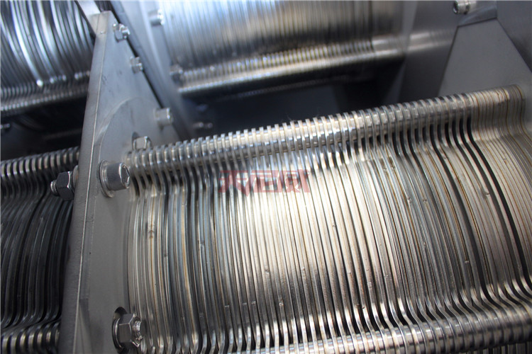 目前主流的加工方式為304不銹鋼板材激光切割。板材的厚度一般為2.5mm左右。隨著疊螺機(jī)市場(chǎng)價(jià)格一度降低,一部分疊螺機(jī)廠家為了降低設(shè)備成本,采用PA或PE注塑加工而成,其厚度一般為5mm以上。第一種加工方式是目前主流的加工方式,也是大多數(shù)疊螺污泥脫水機(jī)廠家采用的一種加工方式,其具有加工方便,取材方便,環(huán)片硬度高結(jié)構(gòu)性強(qiáng),平整度好,成品率高的優(yōu)點(diǎn),缺點(diǎn)是成本高,不耐氯離子腐蝕。塑料材質(zhì)的環(huán)片,優(yōu)點(diǎn)是加工成本低,具有一定耐磨性,耐酸堿性高,缺點(diǎn)是硬度差,抗沖擊能力差,加工精度低,結(jié)構(gòu)性差。